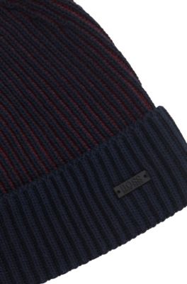 Cotton-blend beanie hat with two-tone