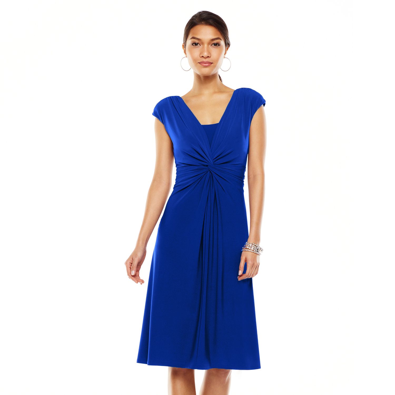 Chaps Solid Knot-Front Empire Dress
