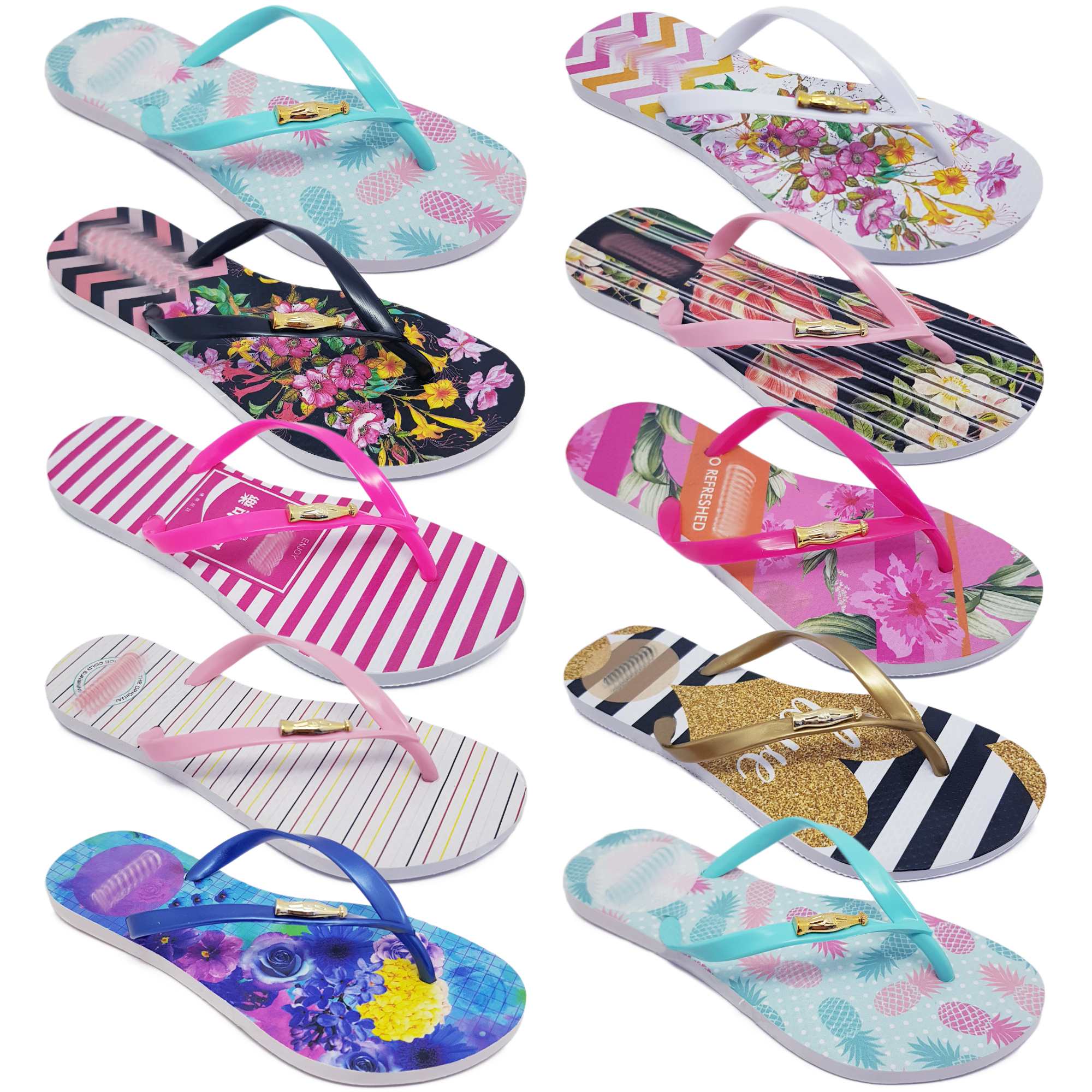 Kit 10 Pares Chinelo Sandália Feminino Estampado Atacado K24 | Shopee Brasil