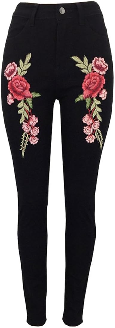 Geurzc Jeans Femme avec Broderie Fleur Brodé Taille Haute Straight Denim Stretch Skinny Slim Leggings Collant Pantalon pour Femmes Noir L: Amazon.fr: Vêtements et accessoires
