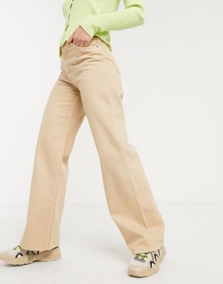 Monki - Yoko - Jean large en coton biologique - Beige Jeans femme