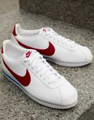 Zapatillas de deporte en cuero blanco con logo en rojo Cortez de Nike | ASOS