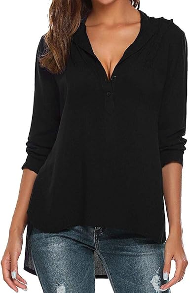 Blusa Feminina Manga Longa Gola V Casual Solta Cor Pura Escala ♥ Camisetas Femininas ♥ Blusas Femininas | Amazon.com.br
